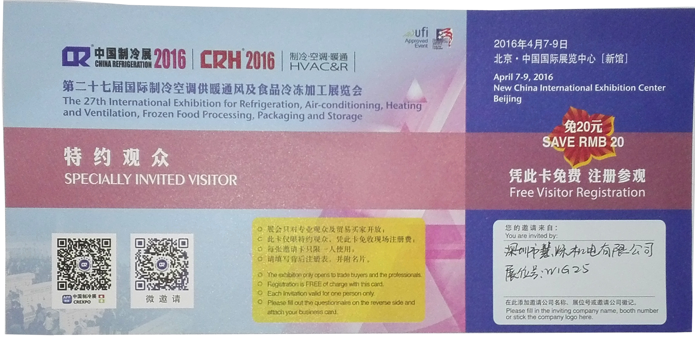 关键词: 请联系我们索取邀请卡--2016年4月7-9日,北京中国国际展览中心[新馆],展位号:WIG25,欢迎您的参观。